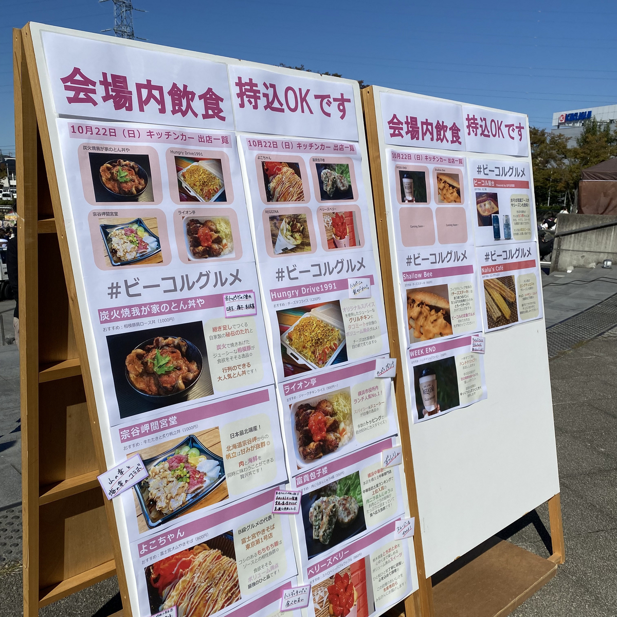試合開始は14:05ですが、ビーコルグルメを堪能すべく12時頃の開場時間に合わせて到着。これがま〜〜〜色々美味しそうなのがいっぱいあってとてもよかった。