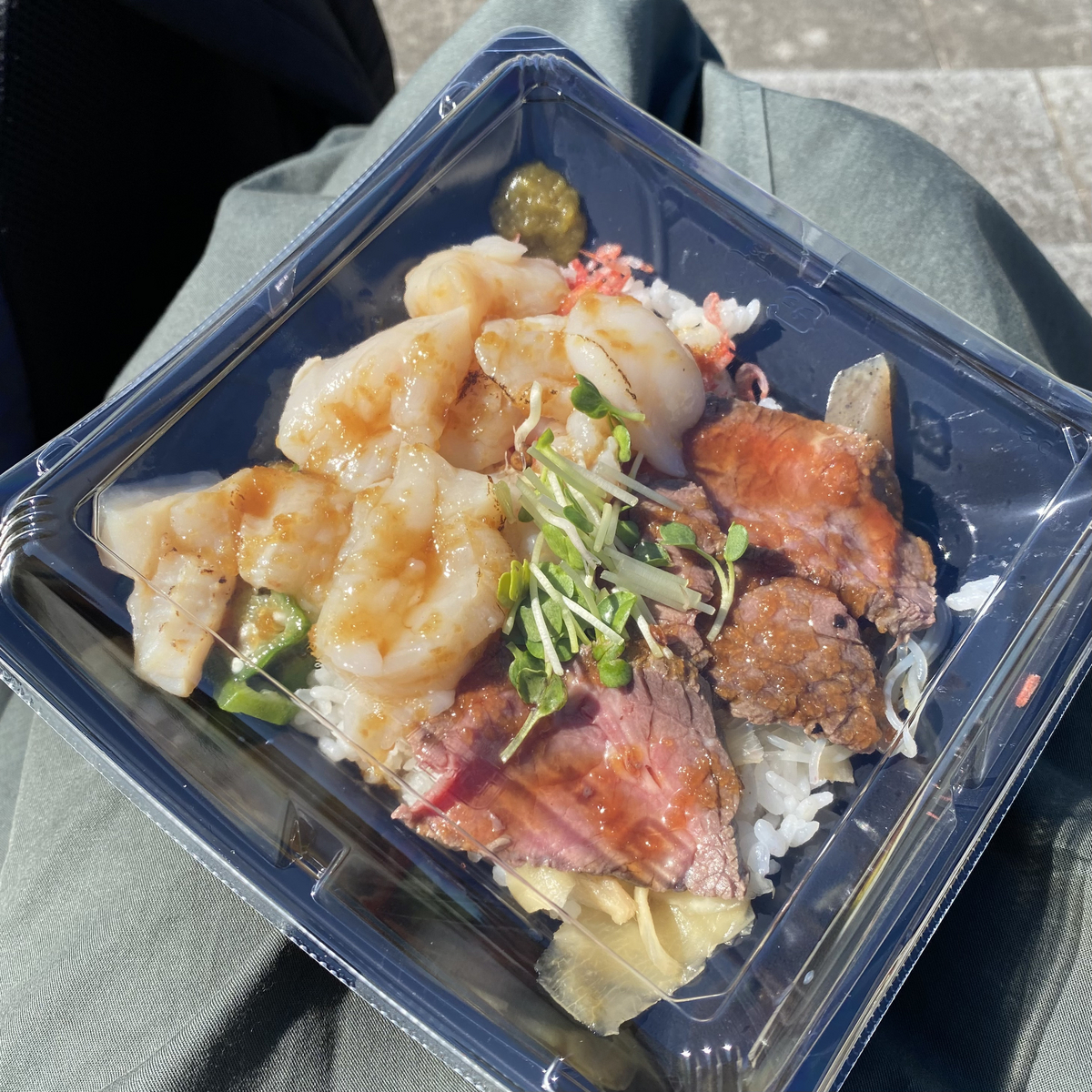気が付いたら自分の後ろでどんどん列が伸びていったので、もう少し遅かったら買うだけで何分もかかってたかも。ゆっくり食べたい&色々はしごしたい人は開場前に着いてたほうがいいです◎ 客席内でも飲食可なので持ち込んでも良かったけど、とても気持ちの良い秋晴れだったのでみんなで外で食べました。美味しかった〜〜〜。