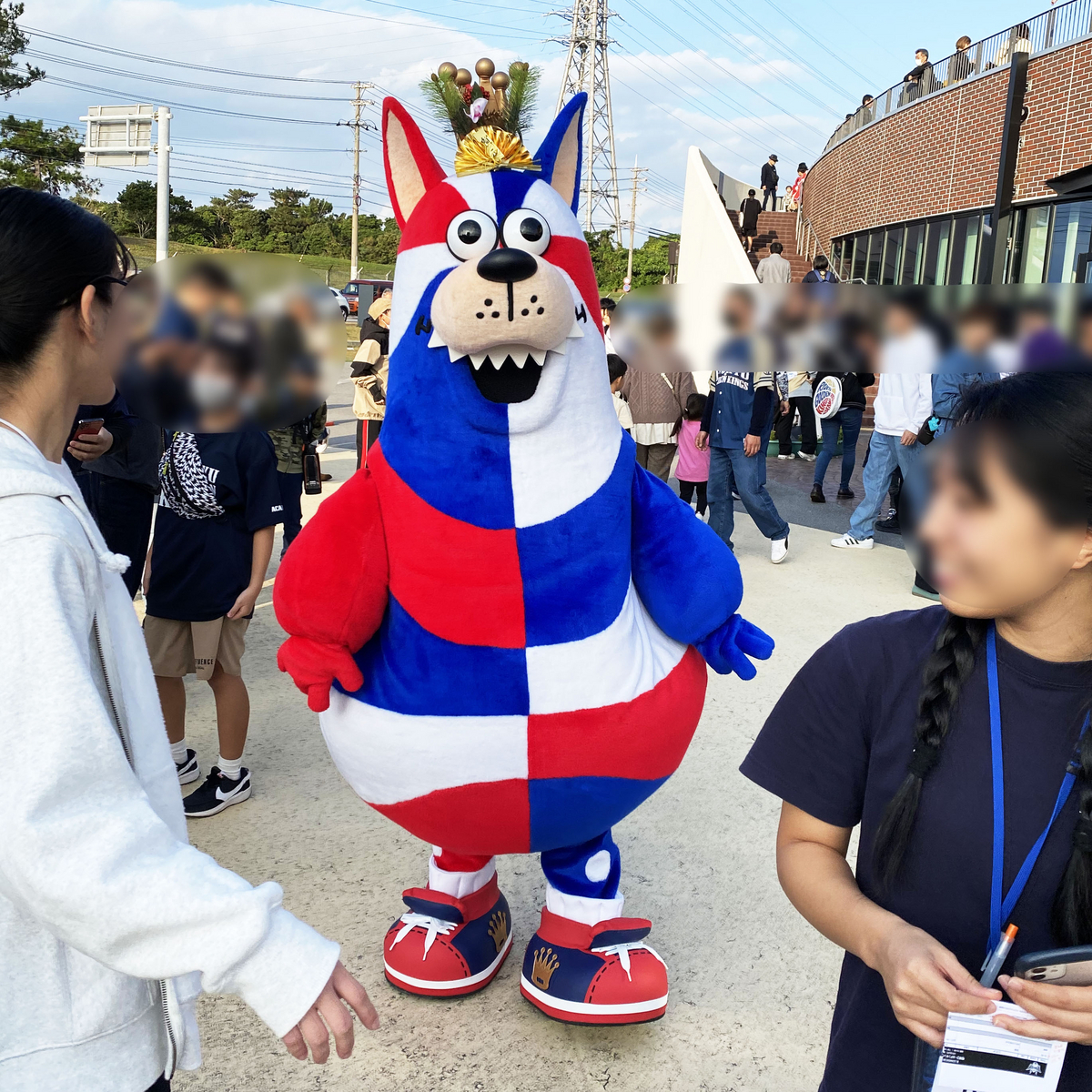 到着するとアリーナ前の広場ではゴーディーがお出迎えしてくれました!かわいい。このどこ見てるか分かんない目がかわいい。ひょうたんみたいなボディもたまらん。お正月ということもあって獅子舞を引き連れていてファンサを振り撒いたり子供にギャン泣きされたりしていました。獅子舞こわいよね……😂